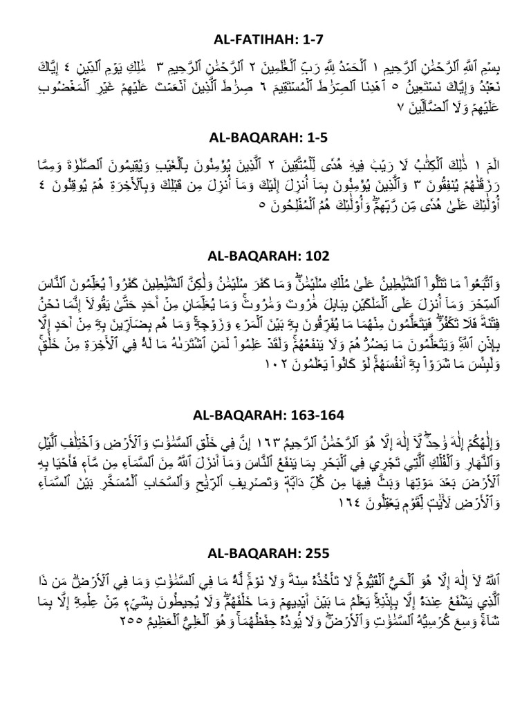 Nabi saw pernah bersabda yang bermaksud. Ayat ruqyah آيات رقية Ruqyah in Islam is the recitation of Quran seeking of refuge remembrance and supplications that are used as a means of treating sicknesses and other problems. Page 1 of 9 MANZIL The Thirty Three Verses To be recited in the Morning and Evening Recommended by Prophet Muhammed pbuh for protection against calamities.